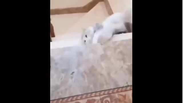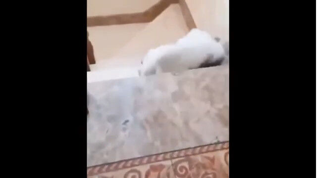 階段の上であることを忘れ、甘えたポーズをとったネコの悲劇