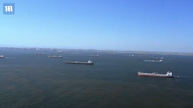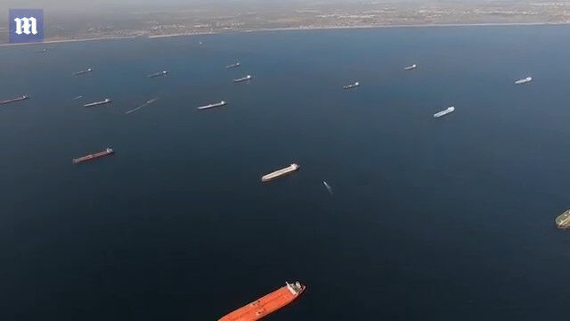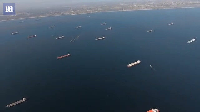 #米カリフォルニアの沖合いに、石油タンカーが群れる異常な光景