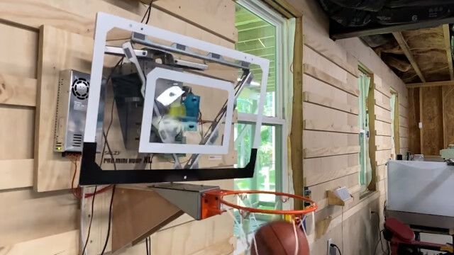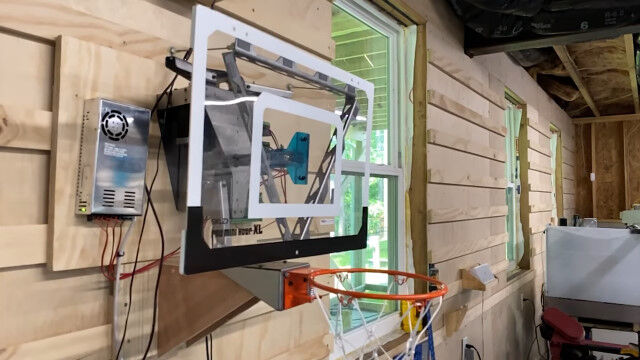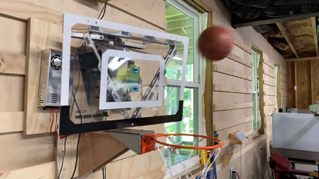 先日、「正面からシュートするとだいたい入るバスケットボールフープ」を作った製作者が、前作に満足できずに作り上げたのがこの新作。