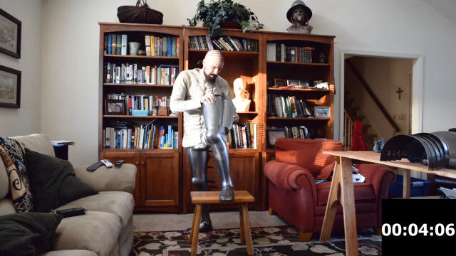 頭から爪先まで、全身を金属板で覆うプレートアーマーを着込むのに、どれくらい時間がかかるものなのかを実際に着用して計測。