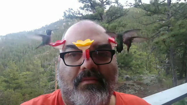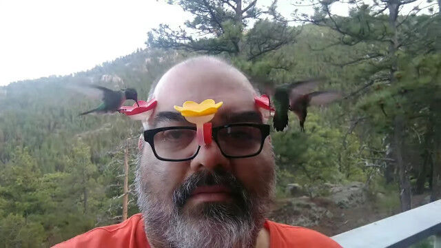 こうしてメガネをかけているだけで、蜜を吸うハチドリを超至近距離から観察することができる。