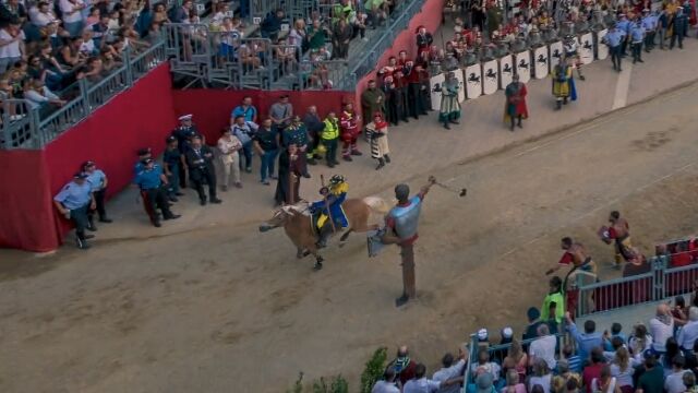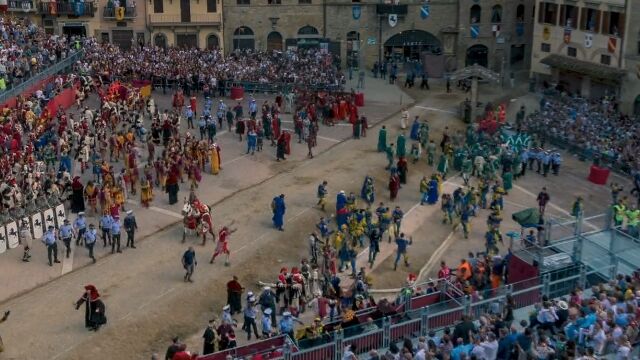 フィレンツェの南東にある都市、アレッツォで行われる古代サラセン人の馬上槍試合を宣伝するために制作されたものであるとのこと。