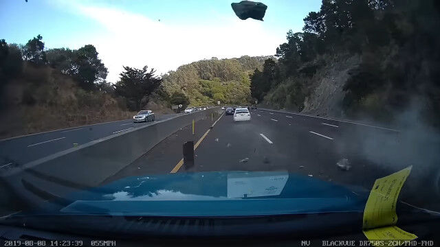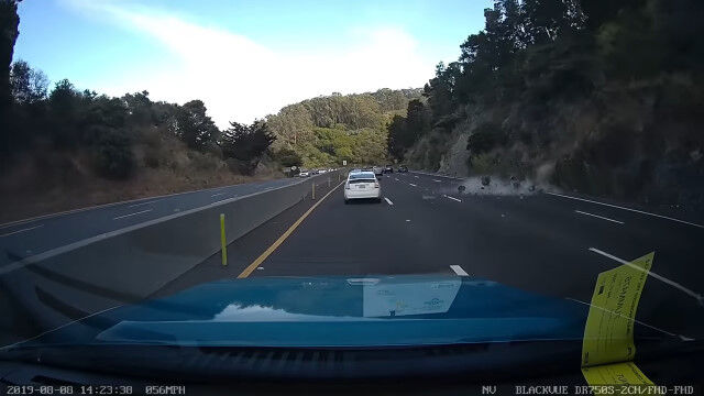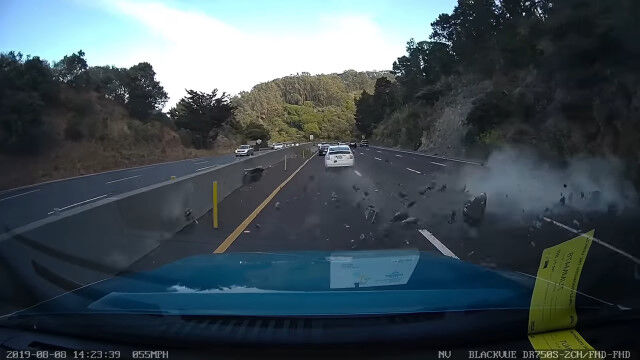 走行中に突然の落石が!為す術もなく巻き込まれた車のドライブレコーダー映像