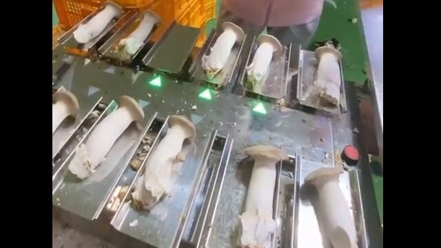 12個並んだはかりの上にエリンギを乗せていくと、丁度いい重さとなる組み合わせを緑のランプで教えてくれる。