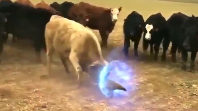 不思議な力で結界を張り、牛たちの突進を受け止め、跳ね返すスーパーガチョウ。