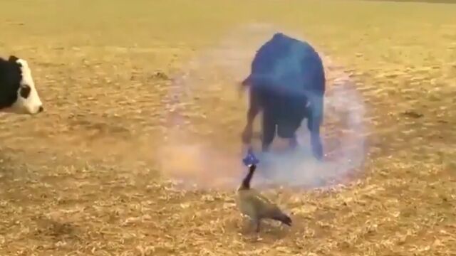 #結界を張り、牛たちの突進を受け止めるガチョウ
