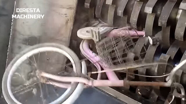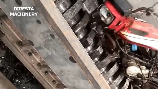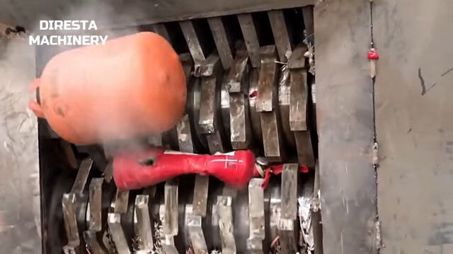 自転車もバイクも消化器もガスボンベも、強力なパワーと頑丈な歯で粉砕していく、超強力シュレッダーの映像集。
