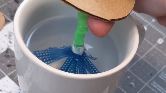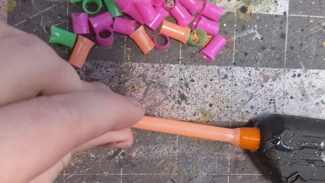 グルーガンの先端に押し付けてストローの口を広げるとか、接着剤と重曹を組み合わせることで早く固まるとか。
