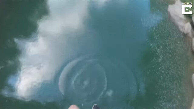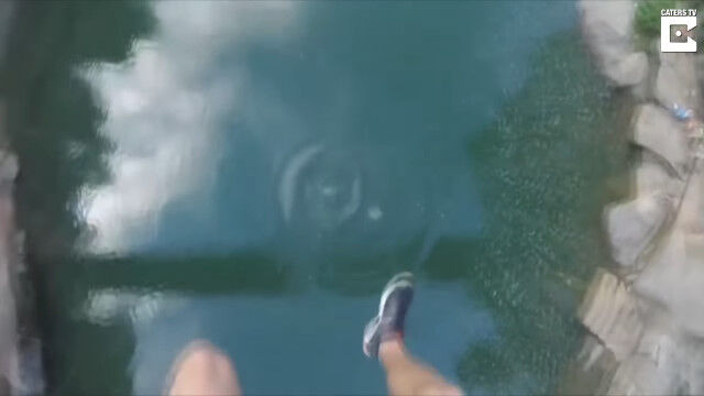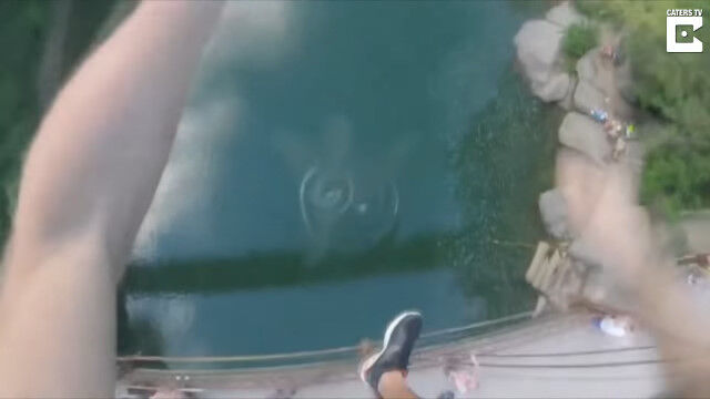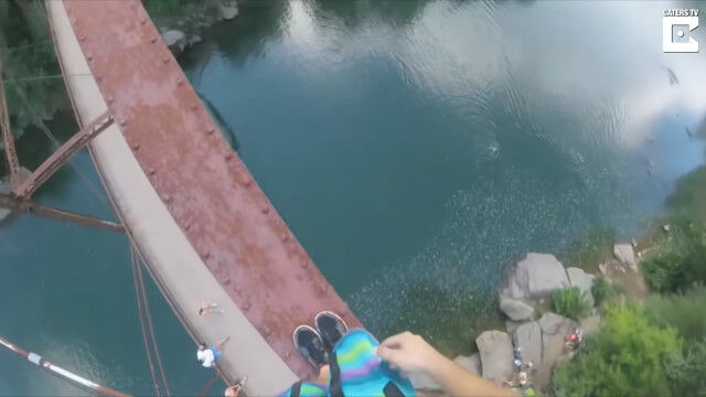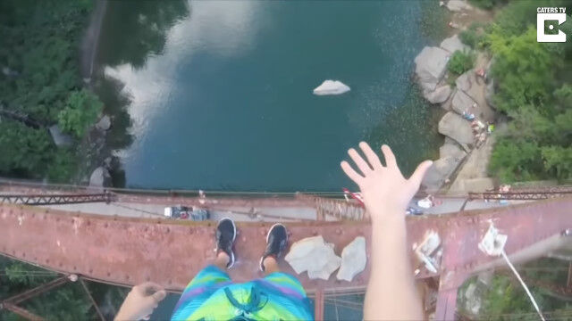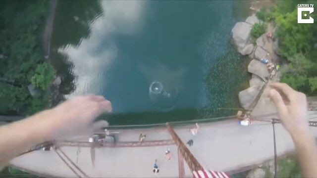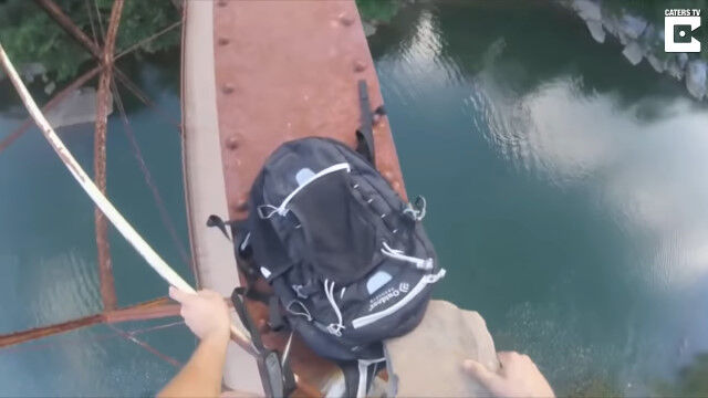 橋の上部構造の上に登り、32メートルの高さから川へと飛び込むヘッドカム映像。
