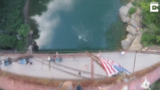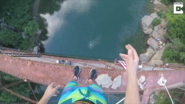 #橋の上部構造の上、32メートルの高さから川へ飛び込む一人称視点映像