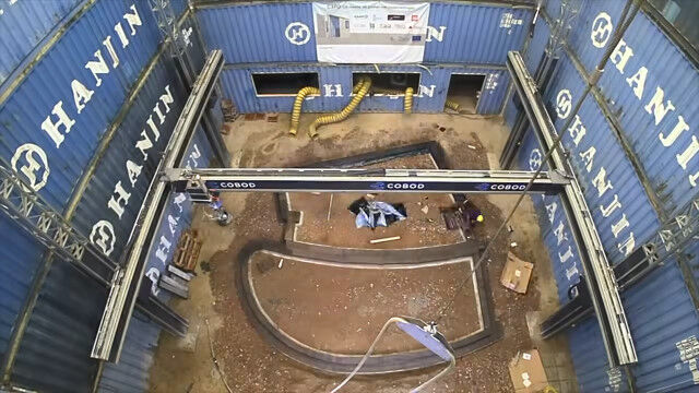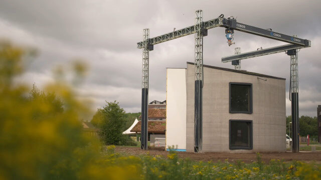 #ヨーロッパ最大の3Dコンクリートプリンタで、2階建ての家を建てる様子