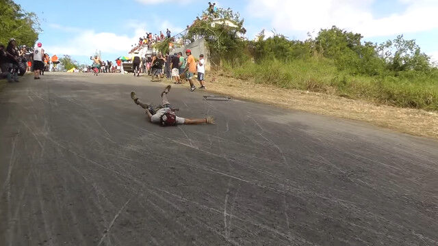もしもヘルメットがなかったら、おそらく後頭部を強打して重傷、あるいは死んでいたという状況。