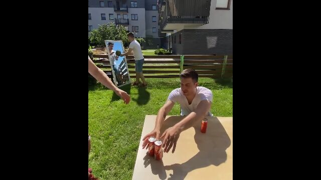 たくさんの自分自身が、スイカやコーラをパスしていくループ映像。