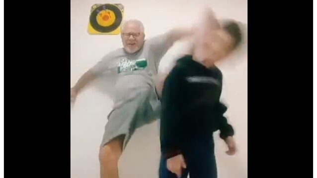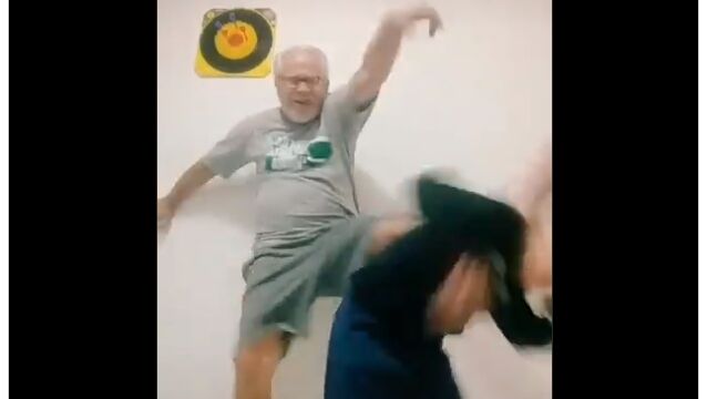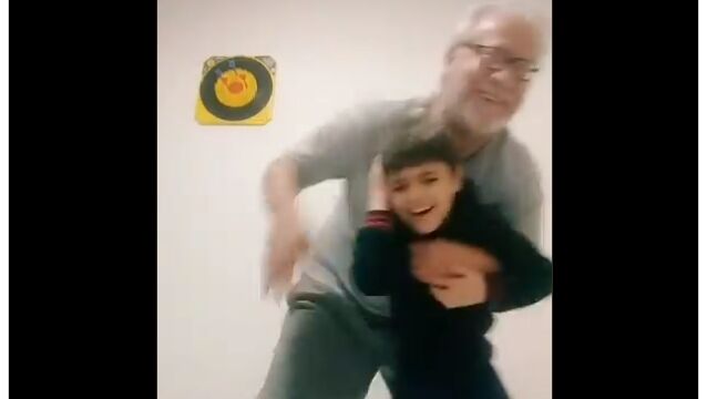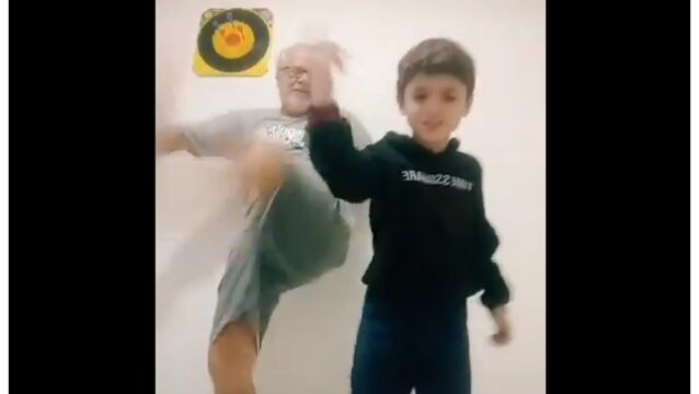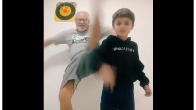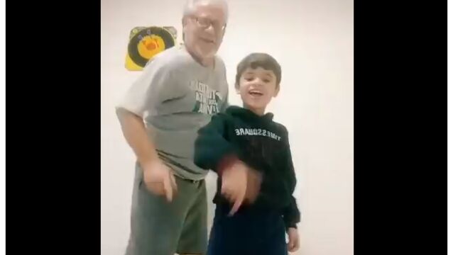 孫と一緒にダンスしているところを動画撮影するお爺ちゃん。