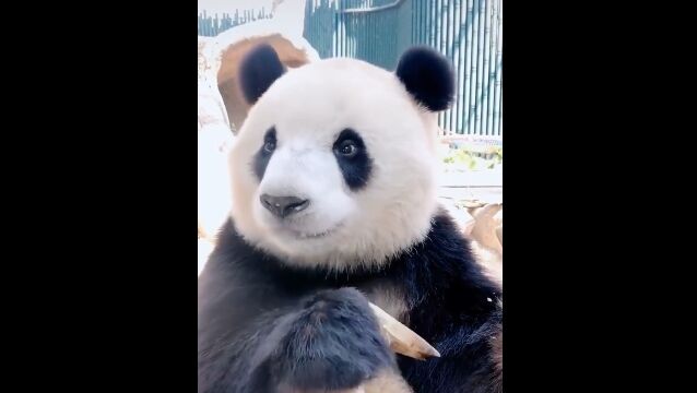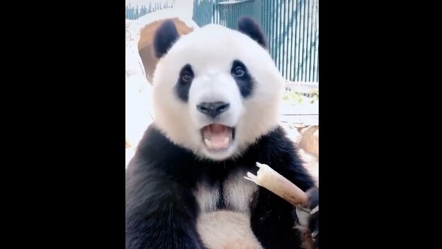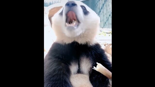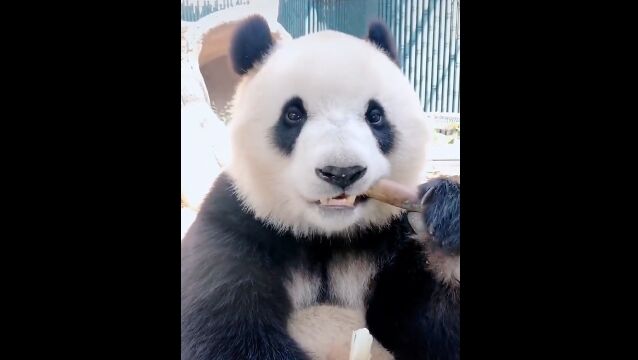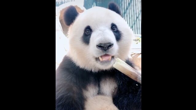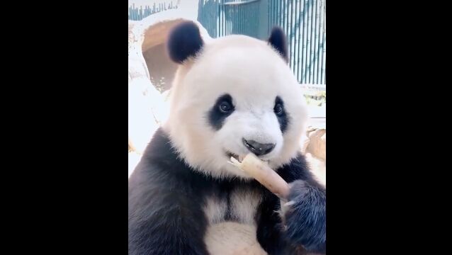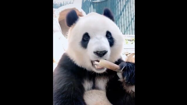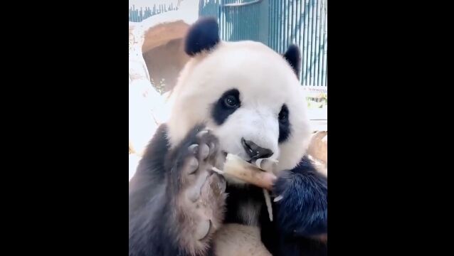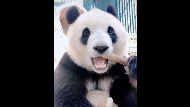 タケノコをシャクシャクと、いい音をたてて食べるジャイアントパンダ。