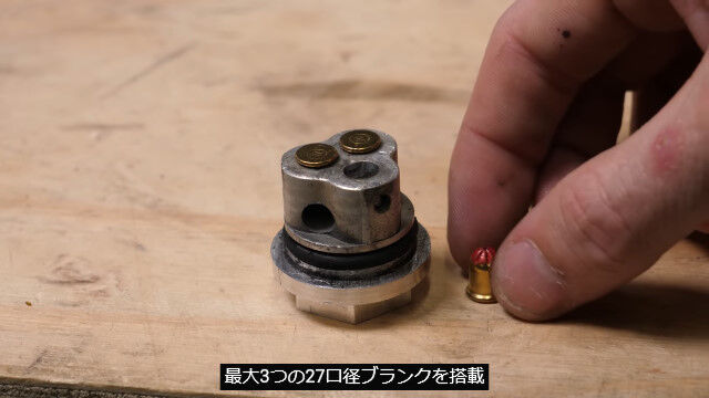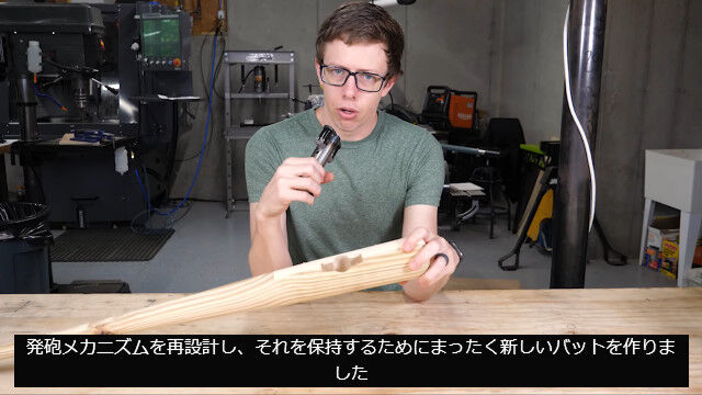 3発の銃弾をバットに仕込み、爆発力でボールを飛ばす。芯に当てれば必ずホームラン級の飛距離が出る自作バット
