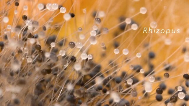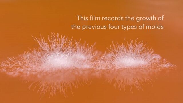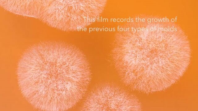 食品の発酵にも用いられるクモノスカビ、クロコウジカビ、ニホンコウジカビ、アオカビの4種を、マクロレンズで接写したタイムラプス。