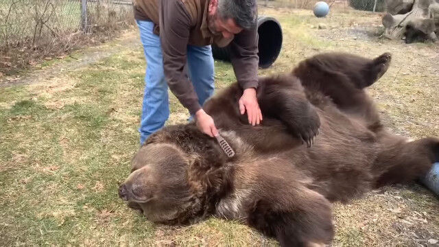 - まるまる太った巨大なクマの毛づくろいをするクマみたいなおじさん $ArticleTagsLoop$>