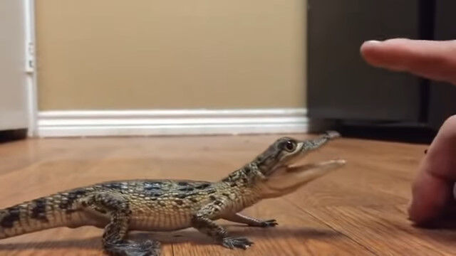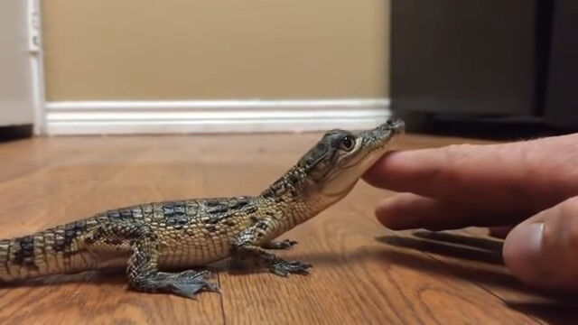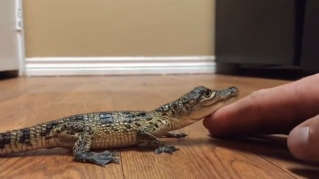 He's not havin it tonight - Baby Crocodile Likes to be Pet