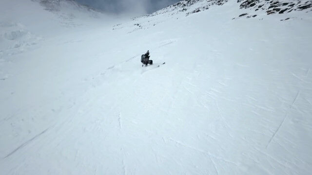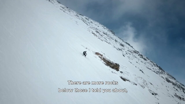 ゲレンデとか普通のバックカントリーみたいに綺麗に降りるのは不可能。立ってるだけでも命がけ。ほんのちょっとでも失敗したら確実に死んでたシーンが何箇所もある。