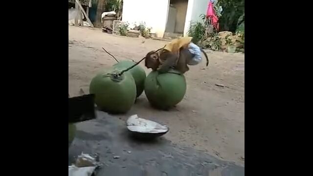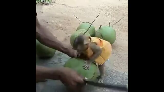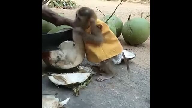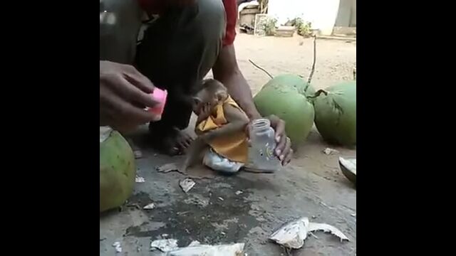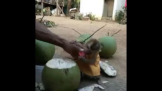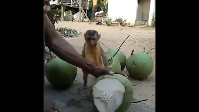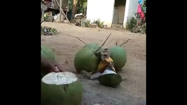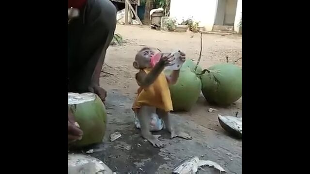 Little Monkey is crazy for coconut water drink - YouTube