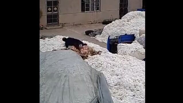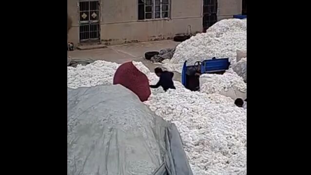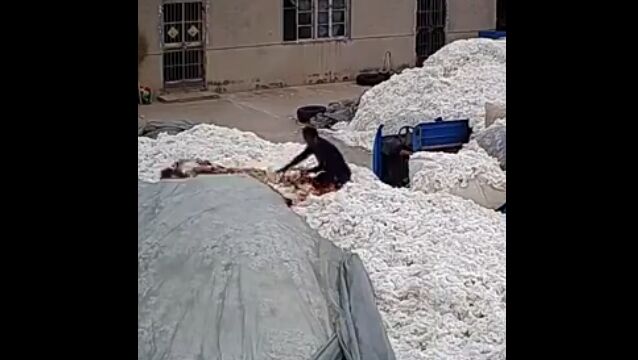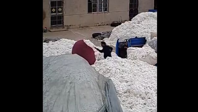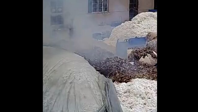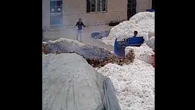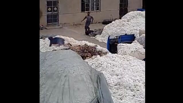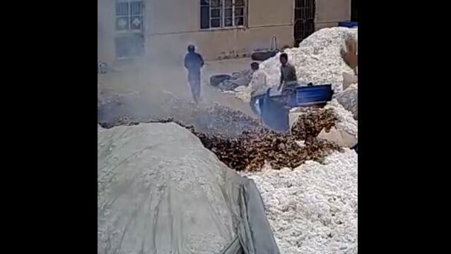コットン山積みの工場にて、コットンを包む袋の開封がうまくいかずに手間取った作業員が取り出したのはライター。