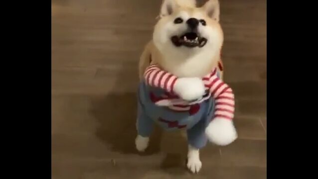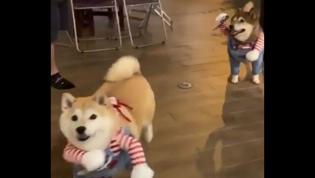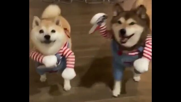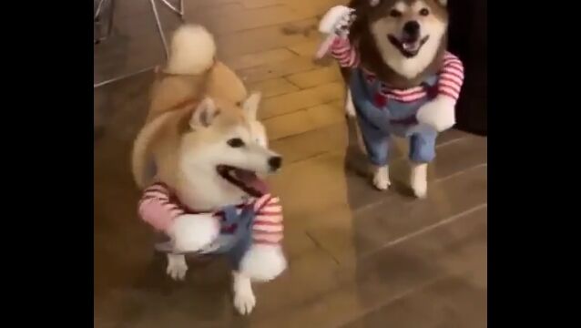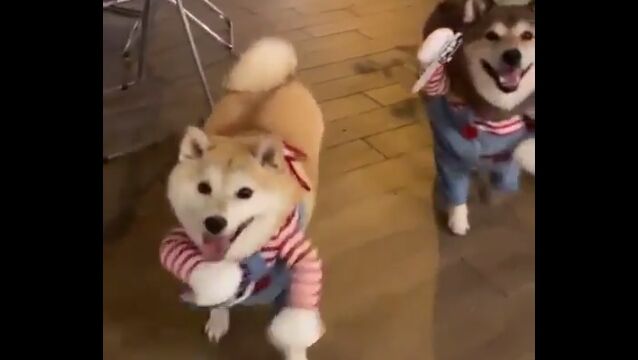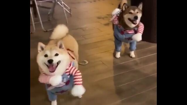 #チャッキーなりきり柴犬2匹が可愛い。犬の二足歩行コスプレはやっぱり最