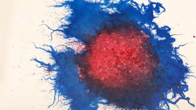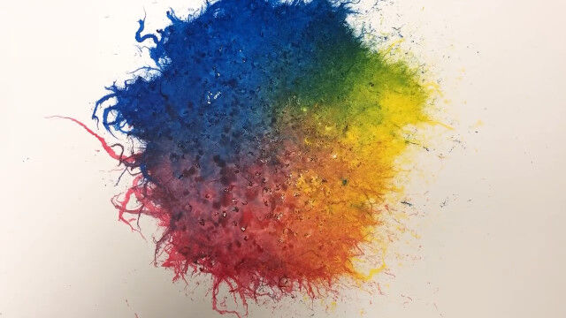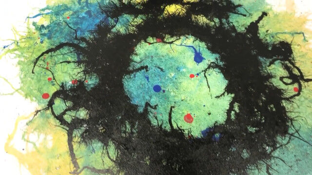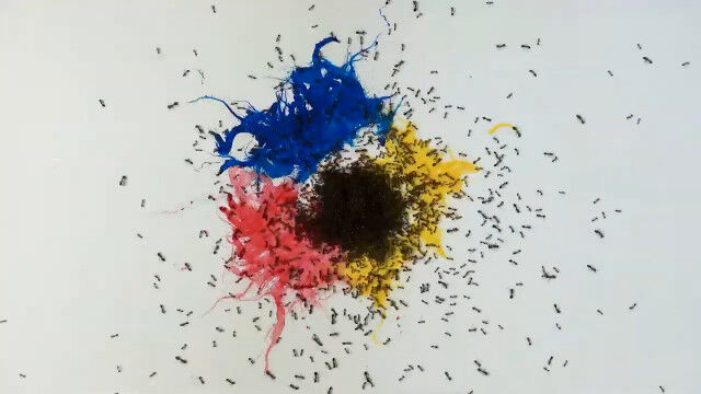 #カラーインクの上にヒアリを這わせて描くというアート