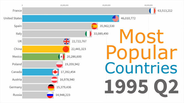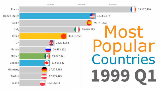 Most Popular Countries by Tourists (1991 - 2019)