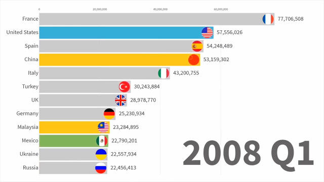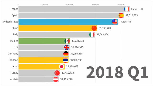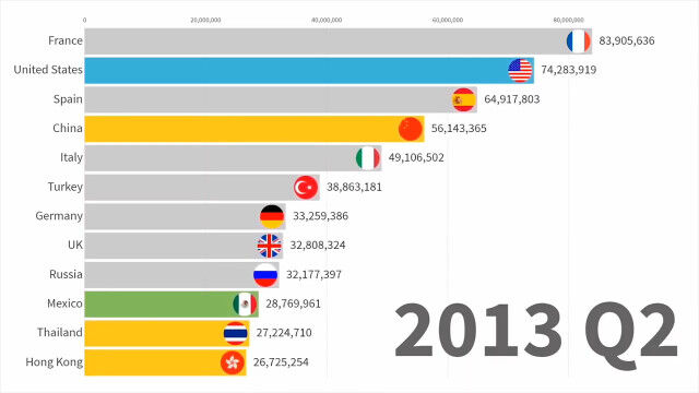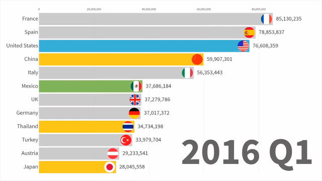 世界で最も人気のある観光地はどこ?1991年から2019年までのトップ12の入れ替わりを視覚化