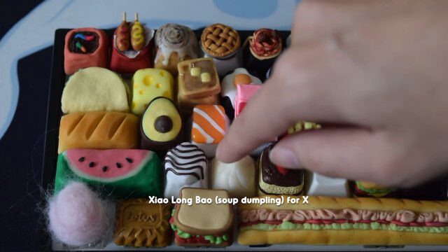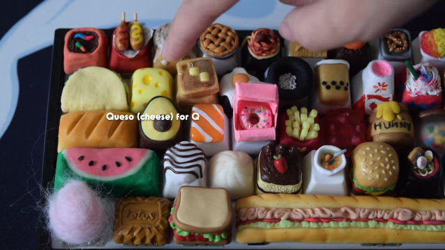 キーそれぞれに対応した言葉を用いてミニチュアフードを作り、デコったキーボード。