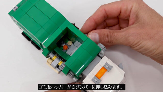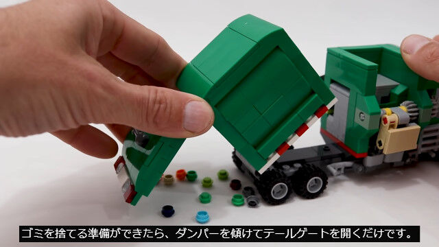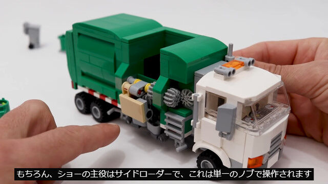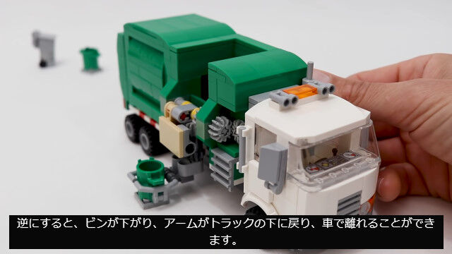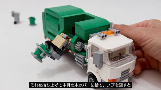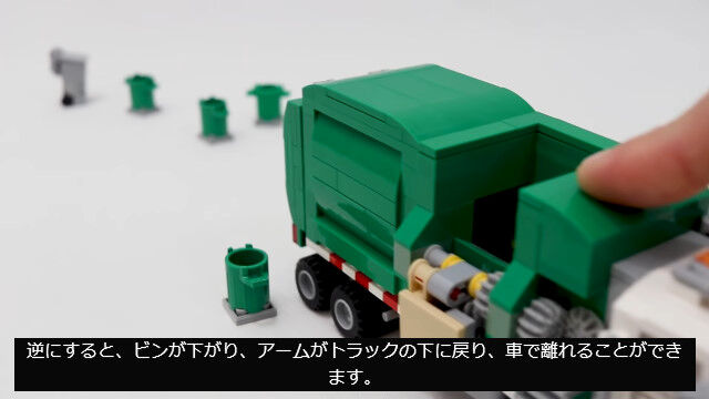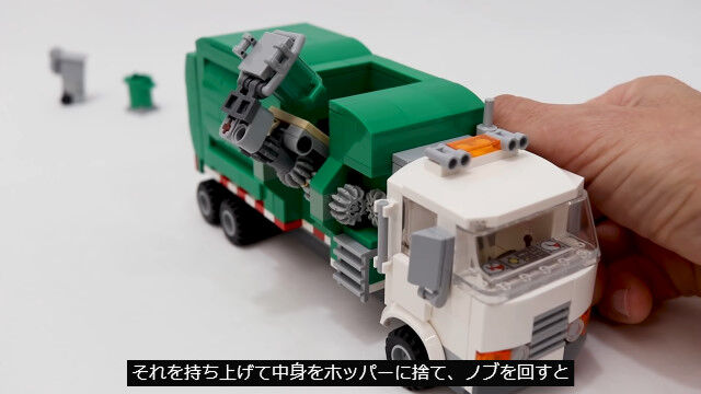 ゴミ箱を掴んでゴミを回収する仕組みまで再現した、レゴ製ゴミ収集車が�