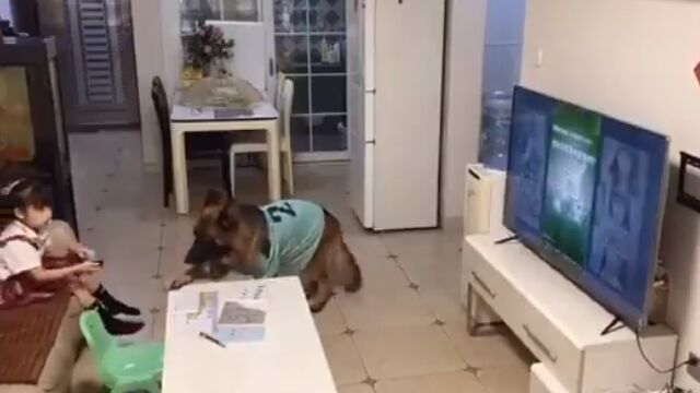 しかし突然、犬が何かを察したかのように立ち上がり、玄関を見つめた後に少女の方へ。