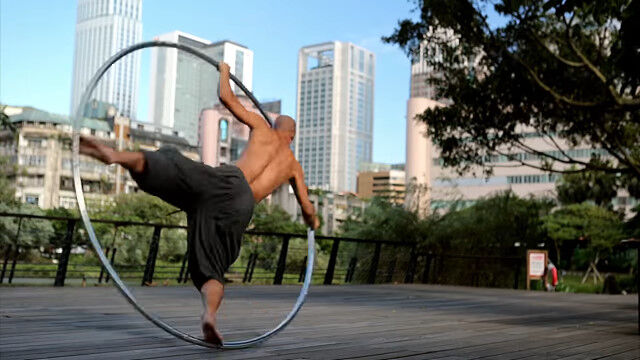 不思議な浮遊感。大きな輪とともに舞い踊る、台北のストリートパフォーマー