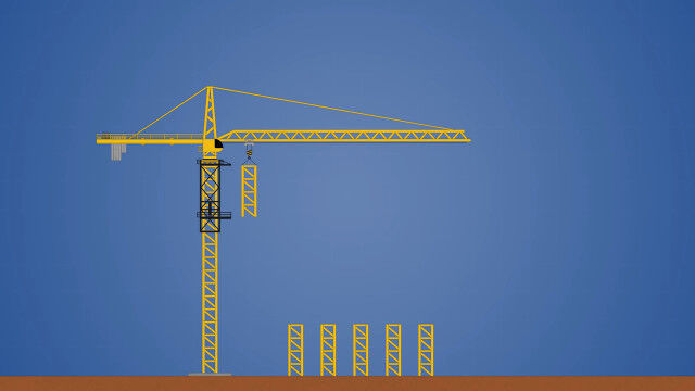 台座を自分で継ぎ足し、継ぎ足し、ニョキニョキ伸びてくタワークレーンの仕組みを紹介した映像