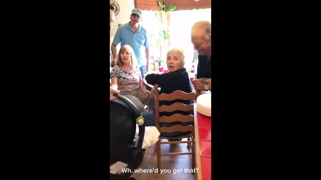 孫が突然連れてきた赤ちゃんを目にした祖父母たち。