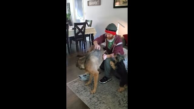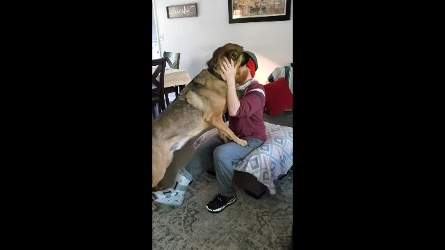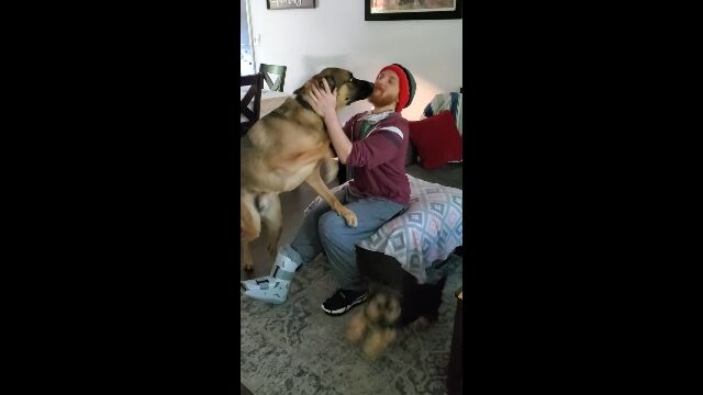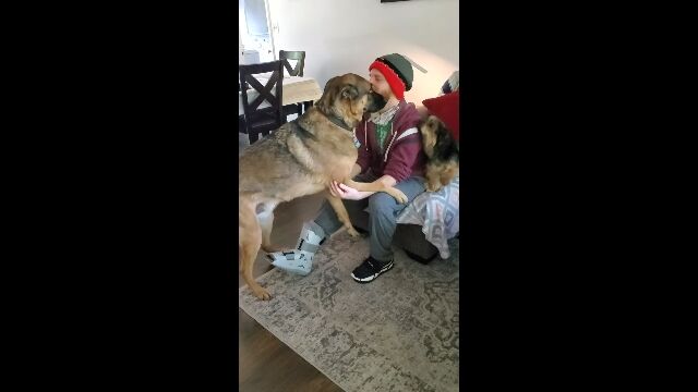 数日ぶりに飼い主に会えた喜びで、感極まってしまった犬