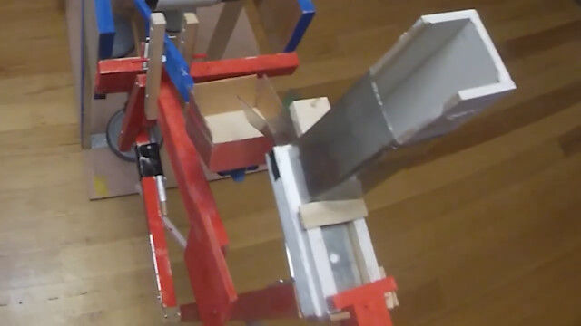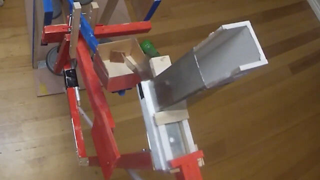 ハンドルを何度か回すことで、装置の上におやつがセットされ、さらに回すと飛ばしてくれる。