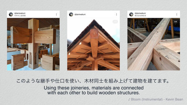 日本の木造建築における伝統的な接続手法、継手を6種紹介した映像。