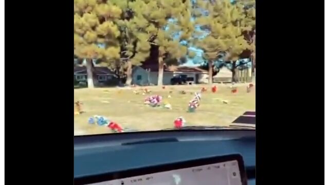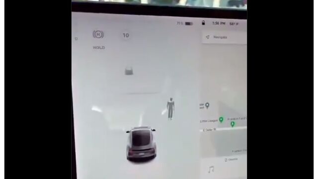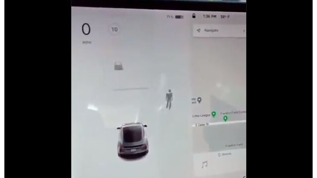 墓地に停車中、テスラ車の衝突回避システムのセンサーが歩行者の存在を感知。