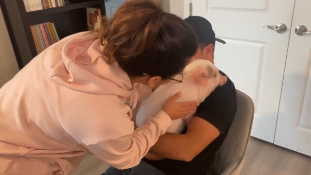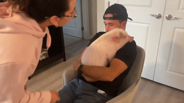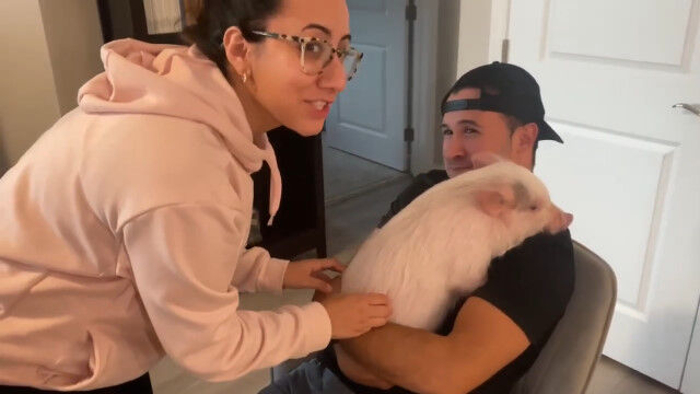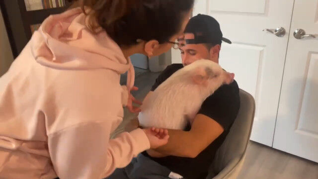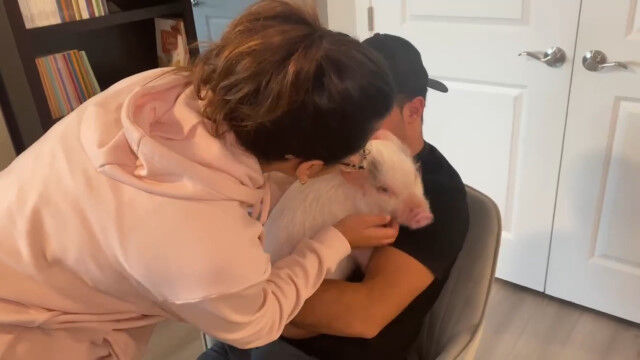 パパと一緒にいたい!と、ママに抱っこさせてくれないブタのピンキーちゃん
