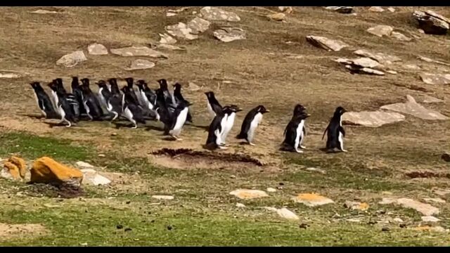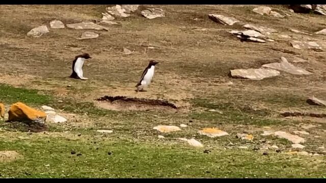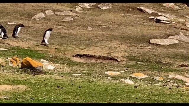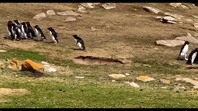 Rockhopper penguins in the Falkland Islands - the confused penguin!