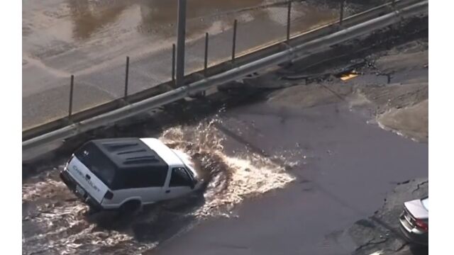Sky25 in Worcester where a water main break caused flooding
