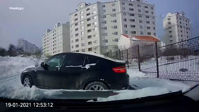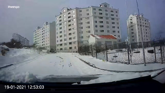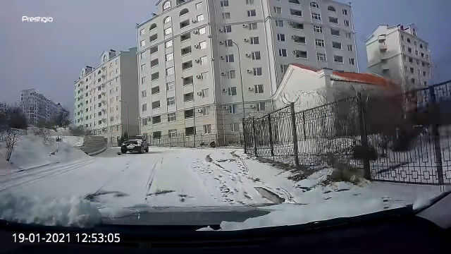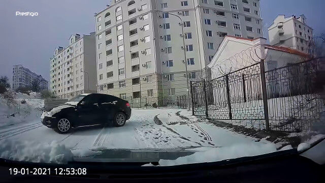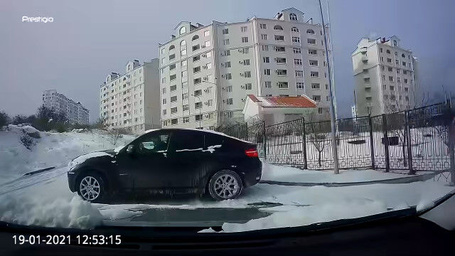 #凍りついた路面で滑った対向車が迫る中、素晴らしい判断力で衝突を回避�