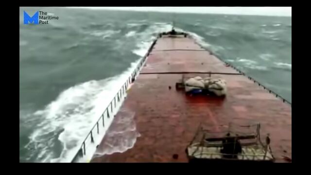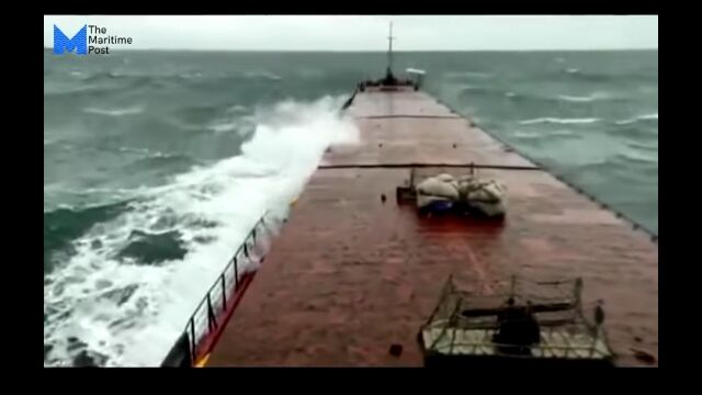 黒海の荒波で折れる貨物船。沈没する直前に撮られた映像が恐ろしい