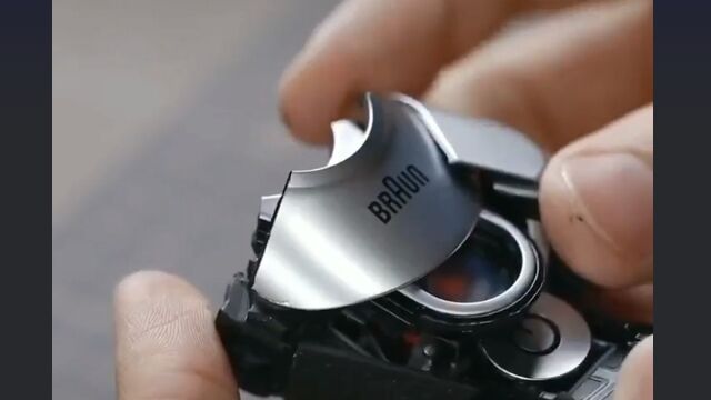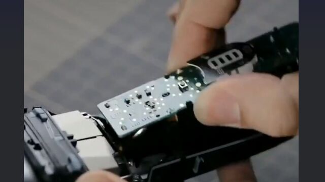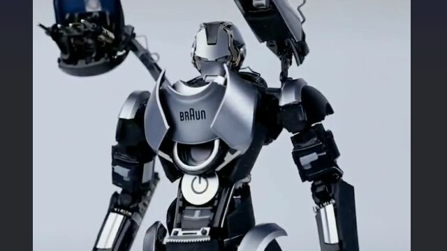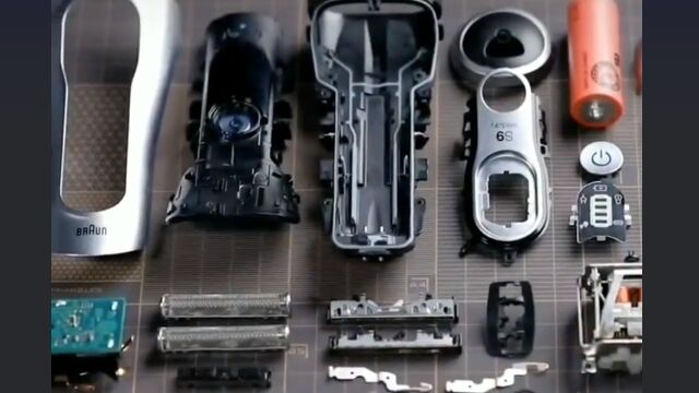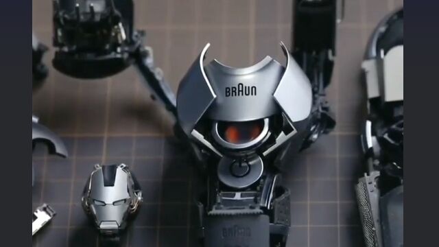 ブラウンの電気シェーバーをバラバラに分解し、パーツを加工して組み合わせ、アイアンマンを製作。