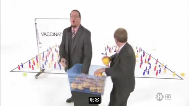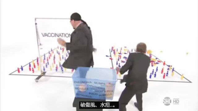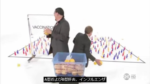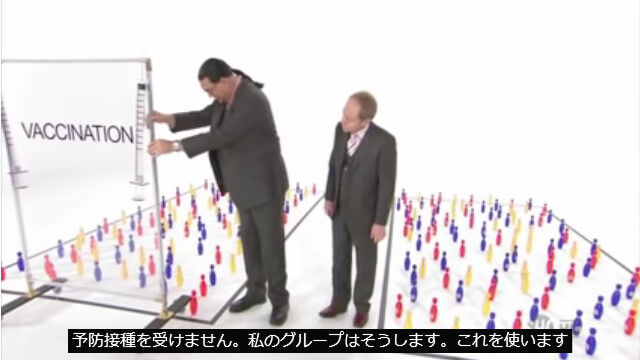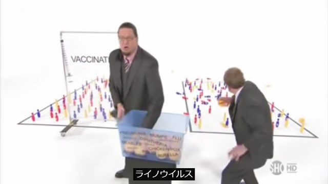 それぞれ、ウイルスによる被害がどれほど違うのかを視覚的に表現した映像。