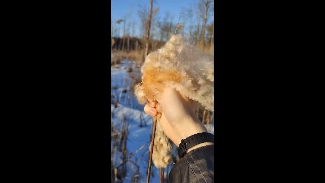 #水辺に生えるきりたんぽみたいな植物、ガマの穂をほぐす映像が気持ちい�