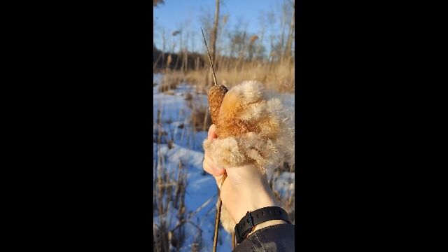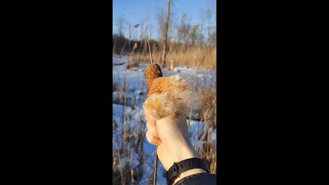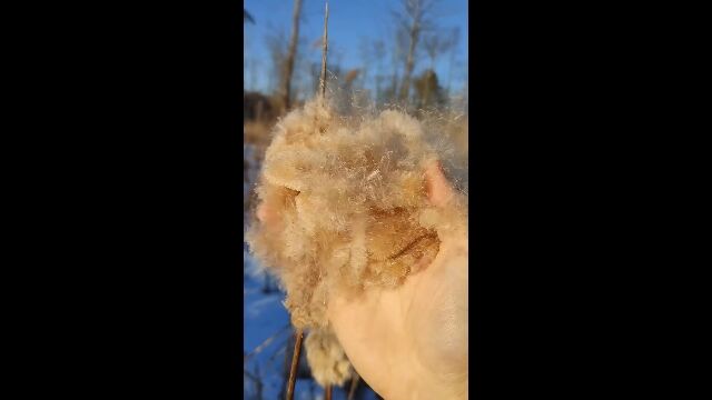 「蒲の穂」をほぐして、とんでもない量の綿毛を出す映像が気持ちいい