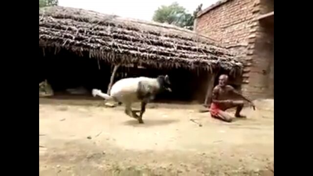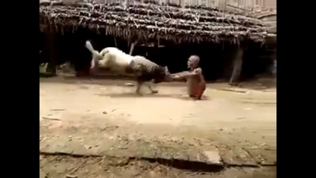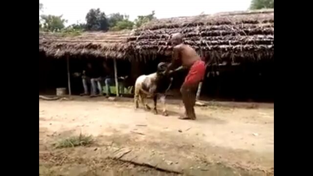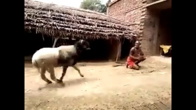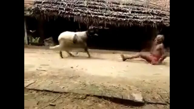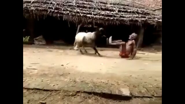 打撃は足裏か肩で受け止める。ヒツジの突撃から身を守る術を教えてくれるお爺ちゃん